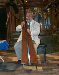 Hudební část večera obstaral Dr. Kleňha, dříve informační pracovník, nyní hráč na kladívkovou citeru a českou folklórní harfu |