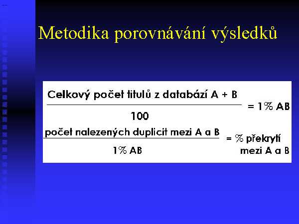 Smyslem studie je zhodnotit, do jaké míry se informační zdroje získané z grantu MŠMT ČR překrývají a zda se jedná o natolik